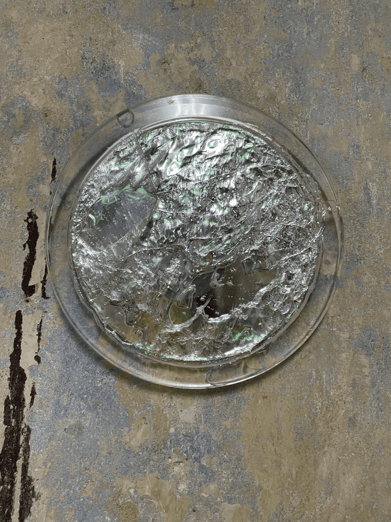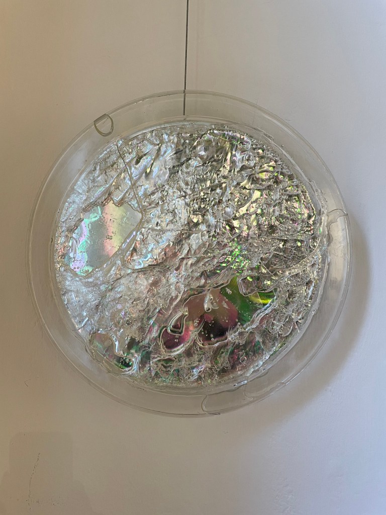 “Drifting” the artwork is a portal to water, a space for light reflection and self reflection. With the use of mixedmedia, the circular transparent material tries to resemble the constant movement of water, contrapposed to our constant status of change. A space for mental health, a space of healing.